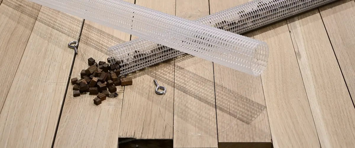 Nylon tube, made of food-safe and wine-resistant nylon.Woven insert for filling with chips of the large assortment and cubes for hanging in a barrique barrel. The tube is supplied with a fastening cord and a hook for screwing into a silicone bung (see accessories).