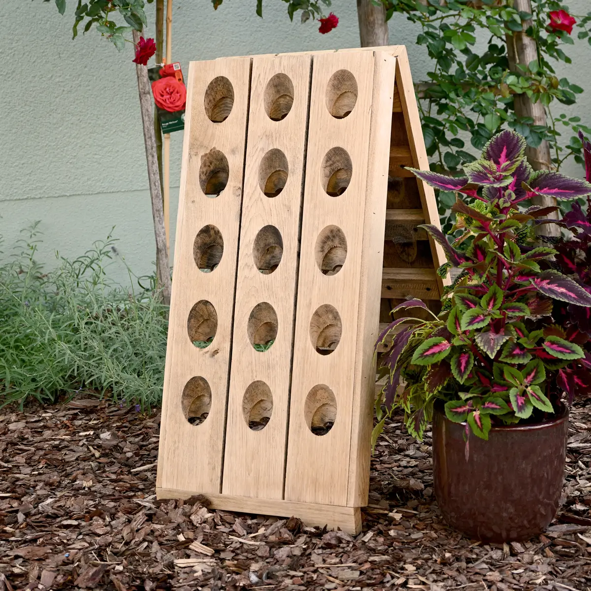Shaking desks or shaking boards, which have been used for centuries in the production of champagne to shake off the yeast in the bottle necks, now have a primarily decorative function. These original riddling boards, made from French oak, are often used today as stylish decorative elements. In gardens and house entrances, they are often decorated with plants, giving them a rustic charm. In restaurants, they often serve as eye-catchers when provided with information boards or even menus, inviting guests in.