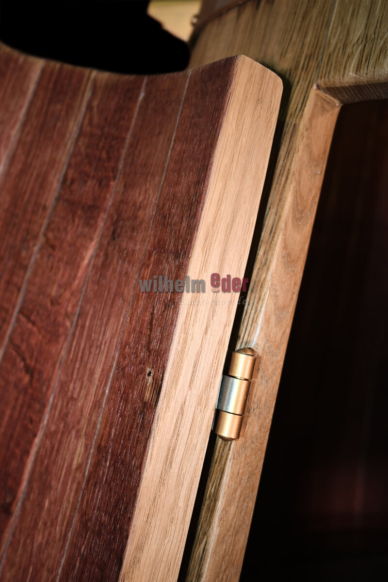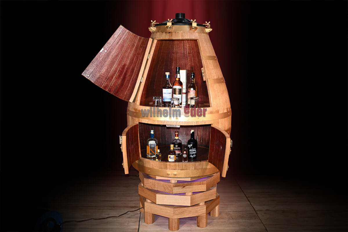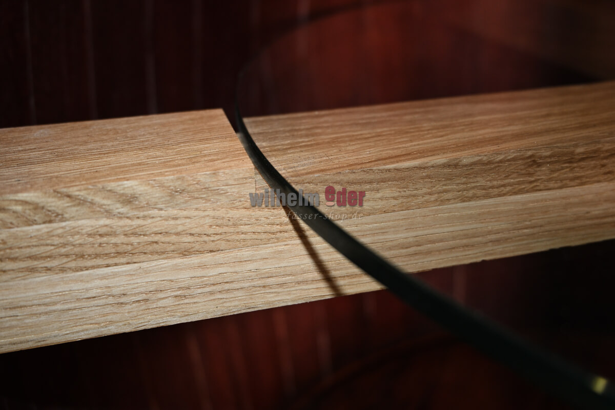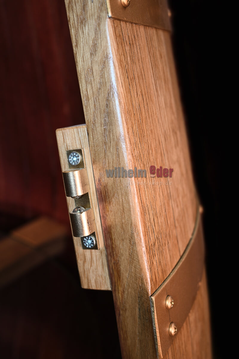 Before making shelves, we let the barrels dry and glue the staves individually. This elaborate process ensures the stability of the shelf and prevents the wood from warping due to temperature fluctuations. Please note, however, that too dry and warm heating air does not do the barrel good.