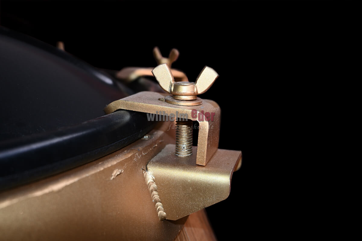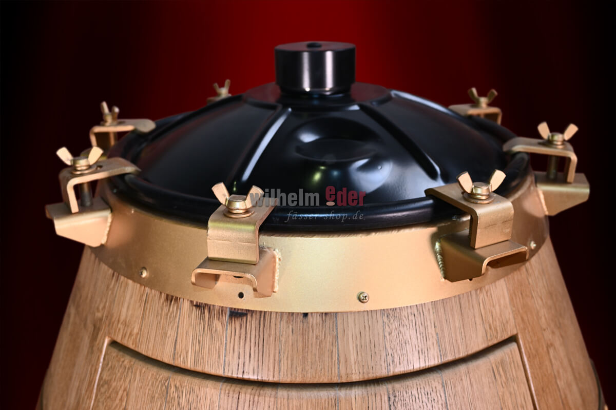 Matt clear lacquer is applied on the outside of the Perle, the barrel hoops are gold lacquered and the dome lid is black.