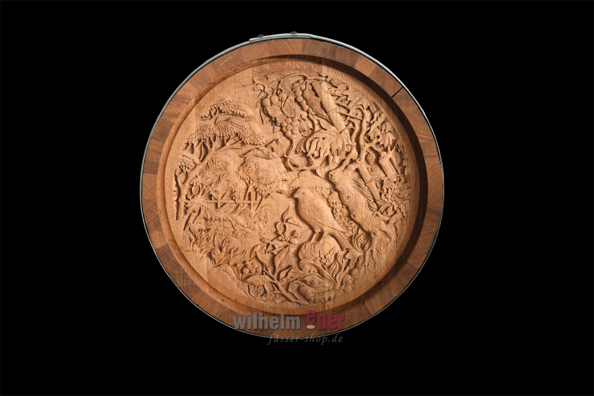 We work with an artist who will artfully carve the barrel head with attention to detail, professionally based on your artwork.