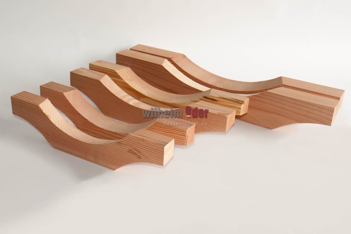 Two pieces, to store a barrel a pair of wood storage (from douglas fir) is required. These can be also laid in the distances of the barrels to arrange a pyramid.