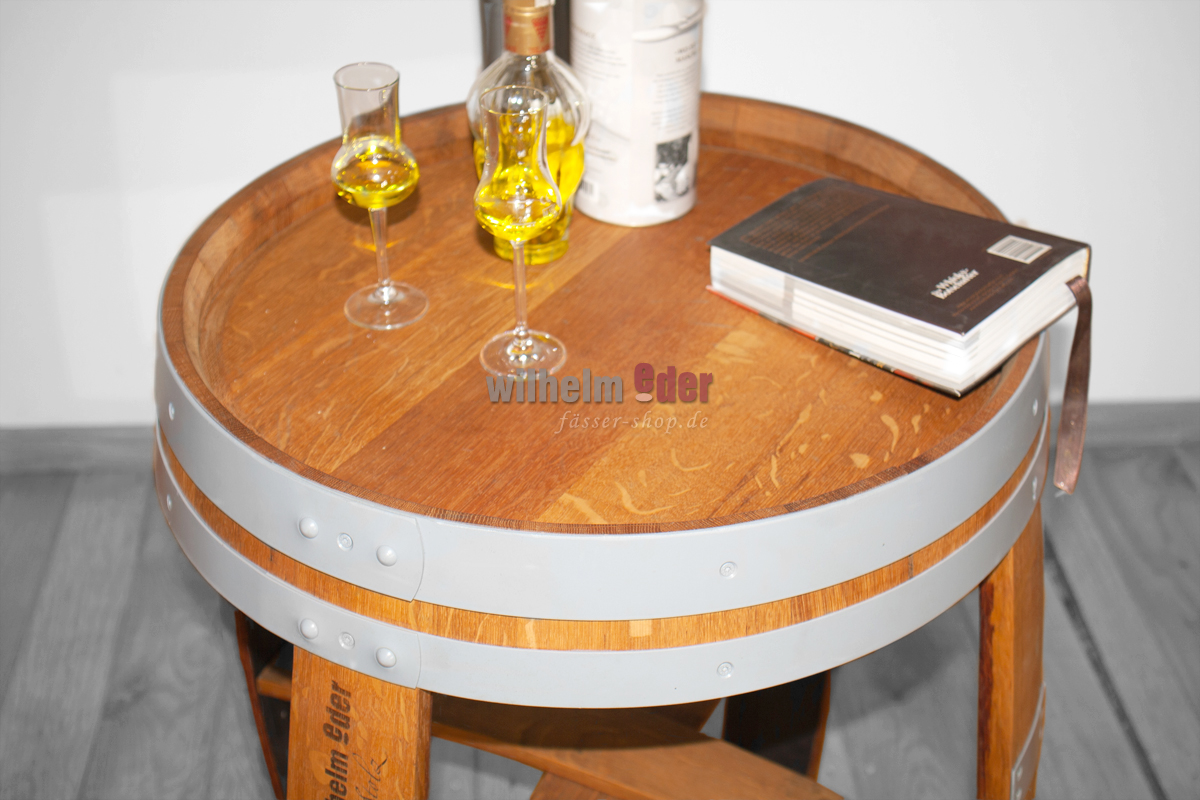 The barrel table is painted and the hoops are painted gray. Optionally we offer other surface treatments, for this we request your inquiry.