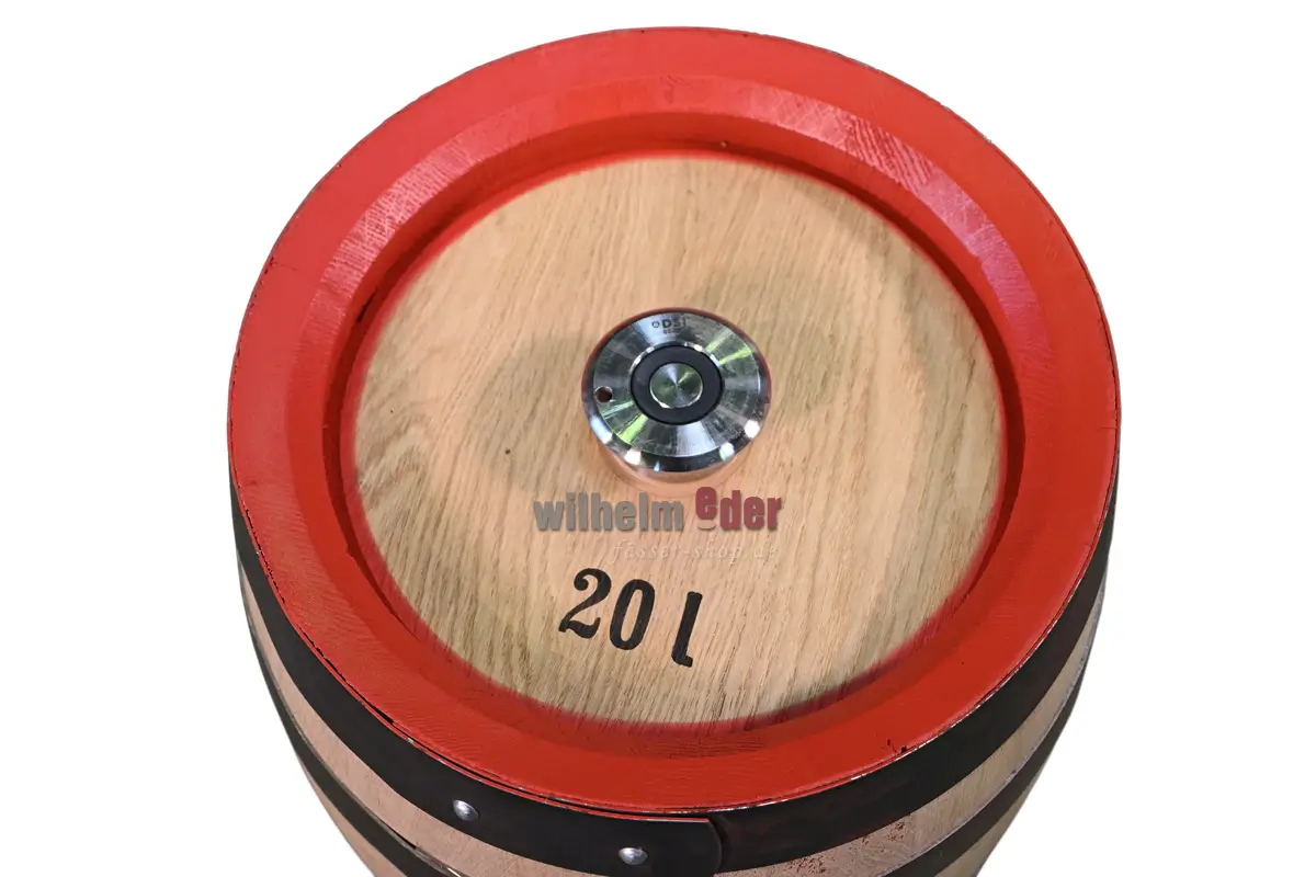 - Description The 20 l beer barrel is made of dried Oak wood and the end of the staves are red painted. The barrel is left natural on the… More