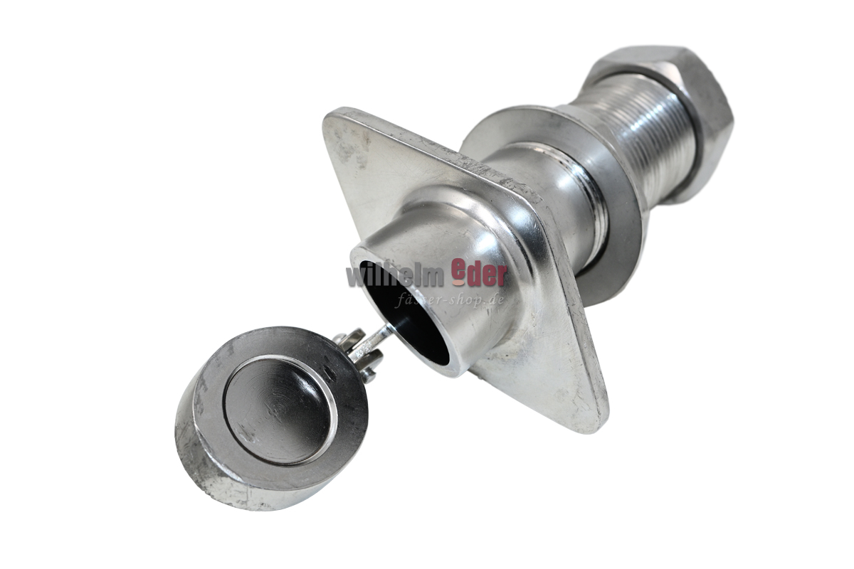 The tap hole flap made of stainless steel (V4A) is installed ready in the door from the barrel. The flap lies in the barrel and is tight. Only by inserting a pipe you can empty the barrel.