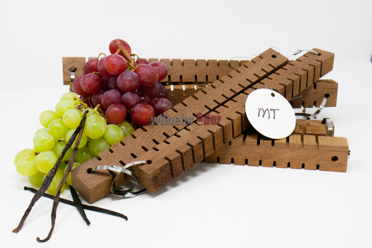 The Cross Cut Staves are an innovation in the field of oak alternatives from America. A faster extraction of flavoring and color substances is guaranteed by the unique cross cuts on the staves.  Set:1x Light1x Medium1x Medium+ Use one stick for 750 ml.Recommended contact time: 4-6 weeks