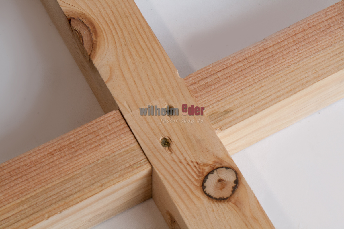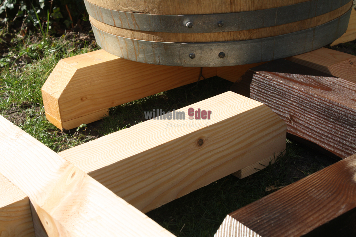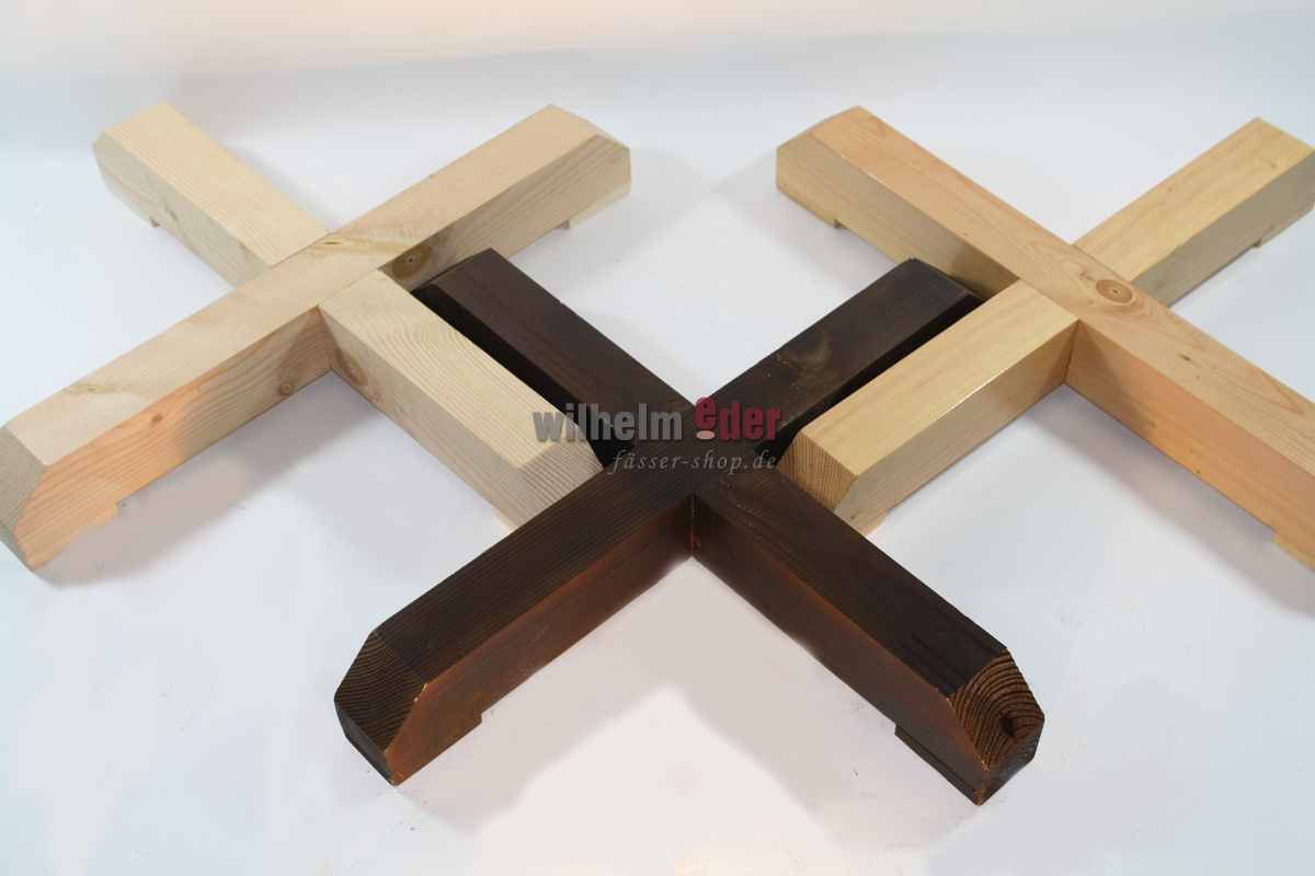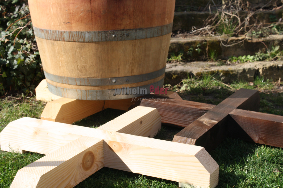 The cross-shaped stand elevates the barrels slightly. The added advantage for rain barrels with a drainage tap is that the tap is easily accessible and a container can be placed underneath it.