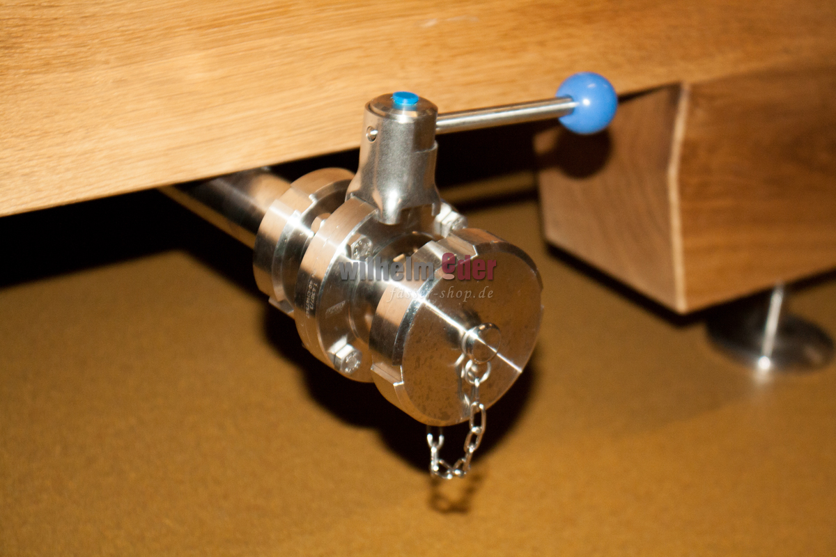 Discharge valve made of stainless steel V4AThe screw connection will be installed and secured with a lock nut at the lowest position on the bottom of the cask. The total discharge drainage will be installed on this connection
