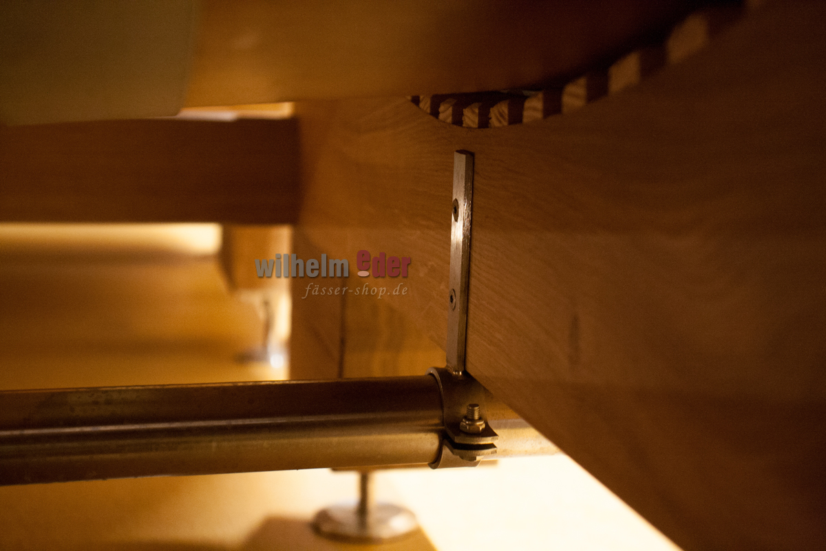 The barrels are equipped with hot-dip galvanised tyres and a wooden door as standard. They are treated with linseed oil or a clear, food-certified and breathable varnish (please specify under "comments" when ordering).