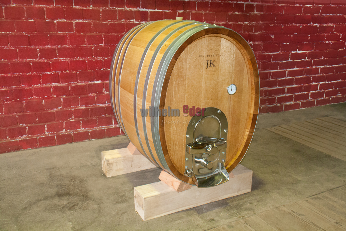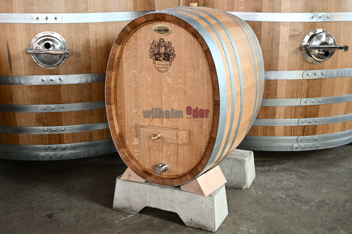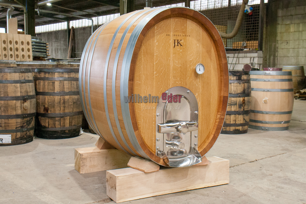 The barrels are equipped with hot-dip galvanised hoops, a silicone bung and a wooden door as standard. They are treated with linseed oil or a clear, food-certified and breathable varnish (please specify under "comments" when ordering).