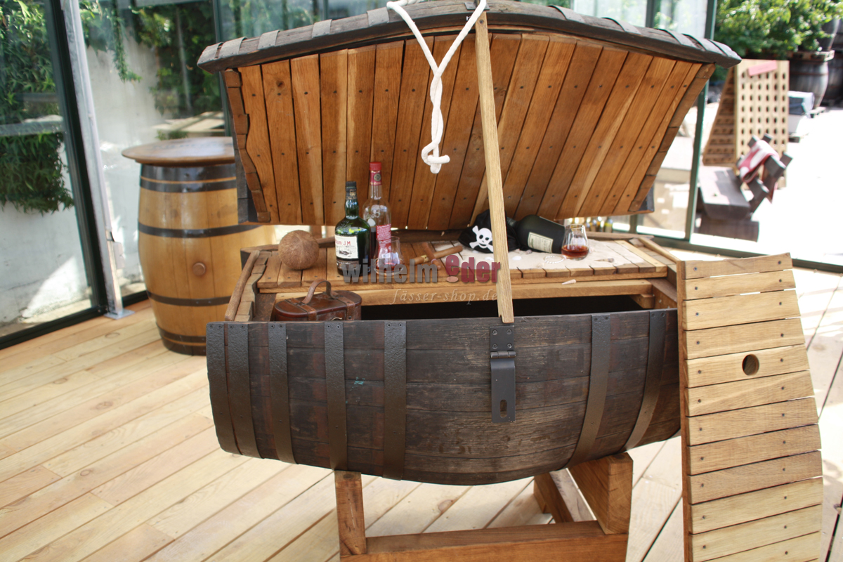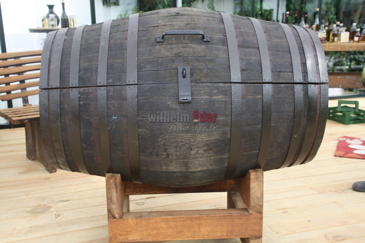 - Description Made of 500 l brandy / single malt barrel Lying on its side and it can be opened with antique fittingsInside totally finishe… More
