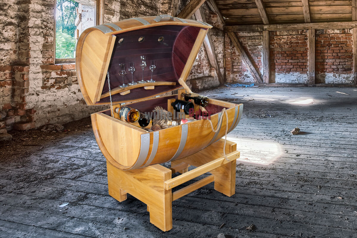 We manufacture the treasure chest from our FassStolz® furniture series in our own barrel joinery.