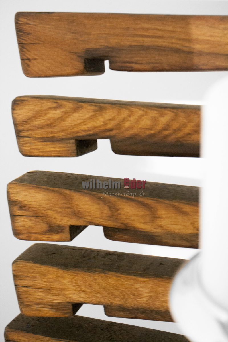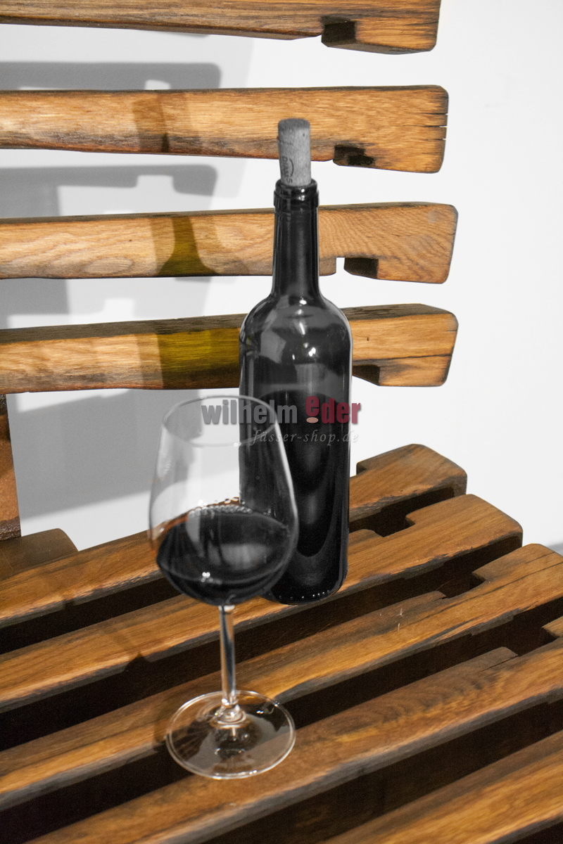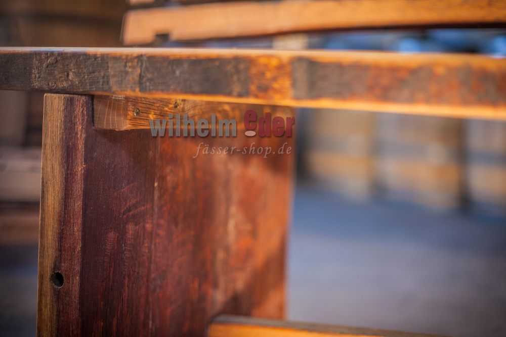 Exclusive barrel bench, manufactured in massive but from the visual aspect not too difficult construction of an ancient big oval 3000 l wine barrel, Every bench is a unique and single copy, especially in the woods’ grain. The barrel’s nature and appearance have been maintained, only the seat and backrest have been shaped. The bench has been treated with precious wooden oil and is also suitable for garden use. Technically perfect with sunk-in screws by an exclusive use of materials of the old wine barrel. The bench can be ordered in individual picklings and paintings.