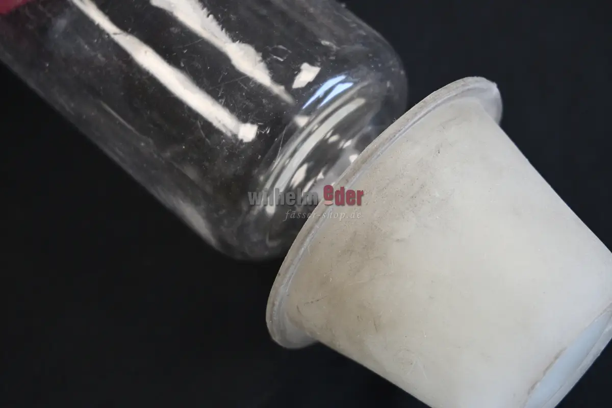 Fill level control for casks for wine and sealing liquid, 210 ml content made out of alimentary proofed plastic, with bung. Shows at a glance if a barrel has to be refilled.