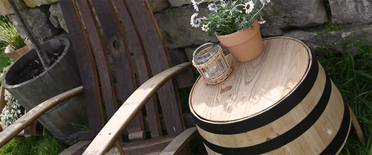 The barrel was dried and then carefully disassembled into its individual parts. The staves were prepared one by one. The staves were planed, dressed, cut to size, joined and glued. The ideal height of the armrest and seat height ensures cosy hours.