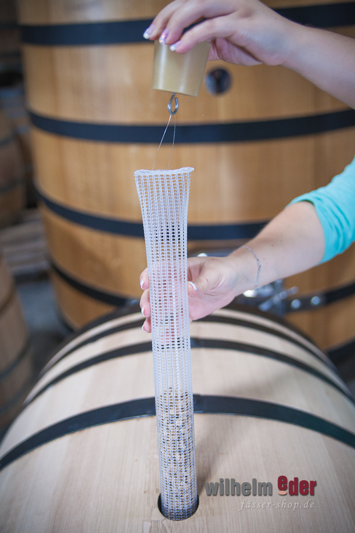 Woven insert for filling with chips of the large assortment and cubes for hanging in a barrique barrel. The tube is supplied with a fastening cord and a hook for screwing into a silicone bung (see accessories).