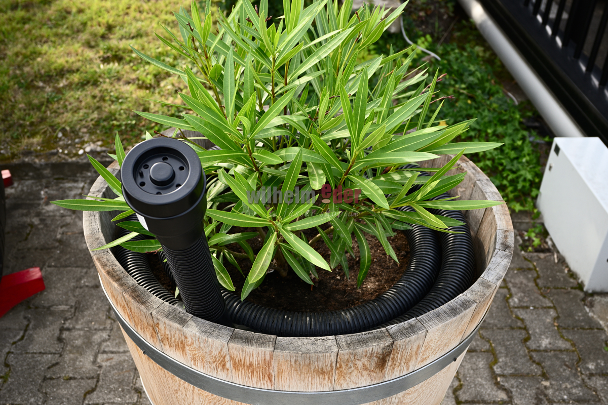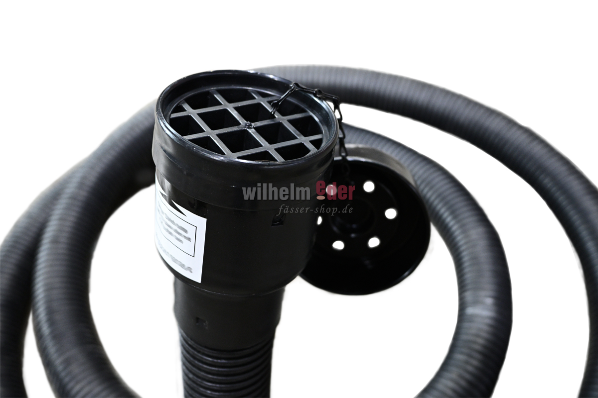 Irrigation and aeration system with vandalism protection. The inlet is equipped with a powder-coated aluminum cap on a chain.
