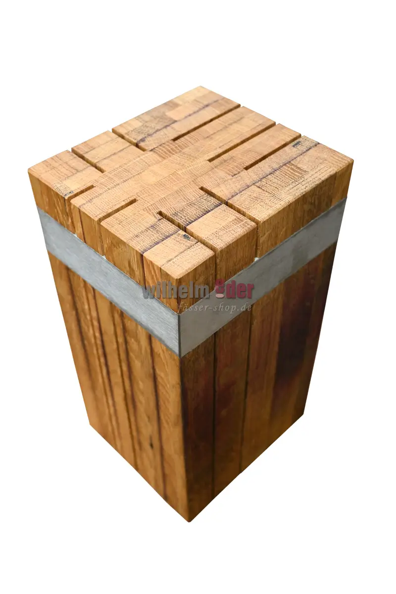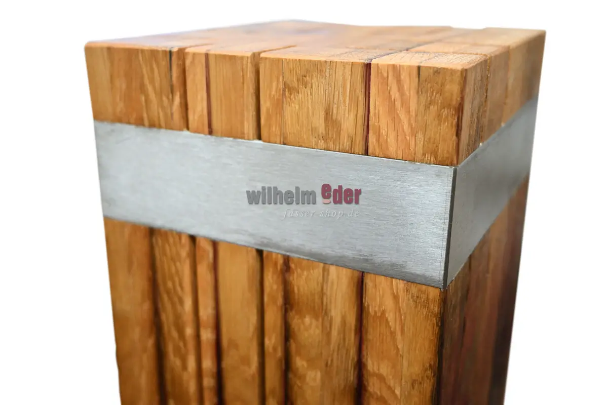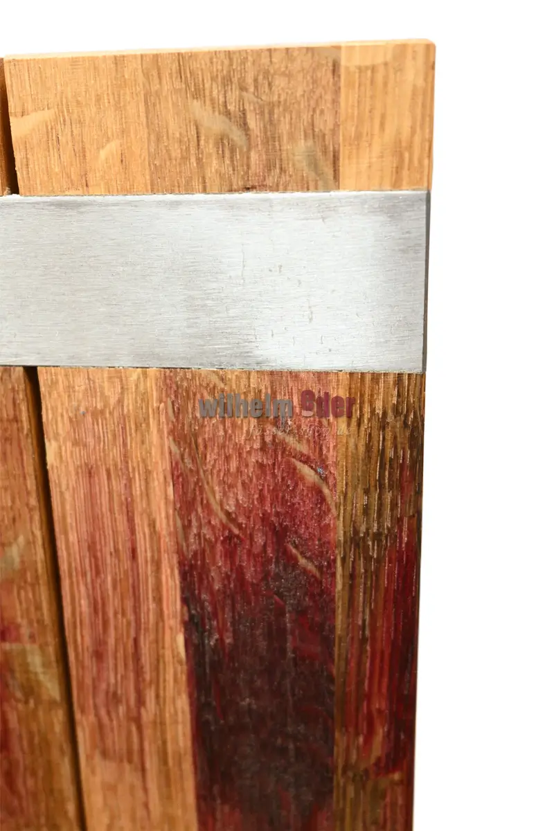 Our unique knife blocks are made with dedication from old original oak staves from barrique wine barrels. After professional cleaning and careful vacuum drying, the staves are glued in a food-safe manner and stabilized with a stainless steel strip. Finishing is done with food-approved linseed oil.
