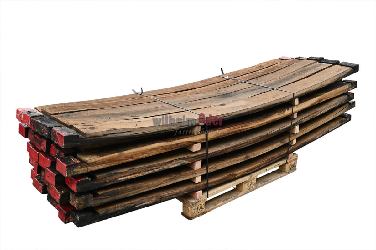 For tinkerers and DIY enthusiasts, a new project can begin with these oak staves from large barrels. In their first life, the staves in strong veneer quality have given many wines or distillates just the right taste and are thus part of a multitude of stories. To write these stories as well as new ones, the staves now offer free space for your creativity: from furniture making to lamps and garden accessories.