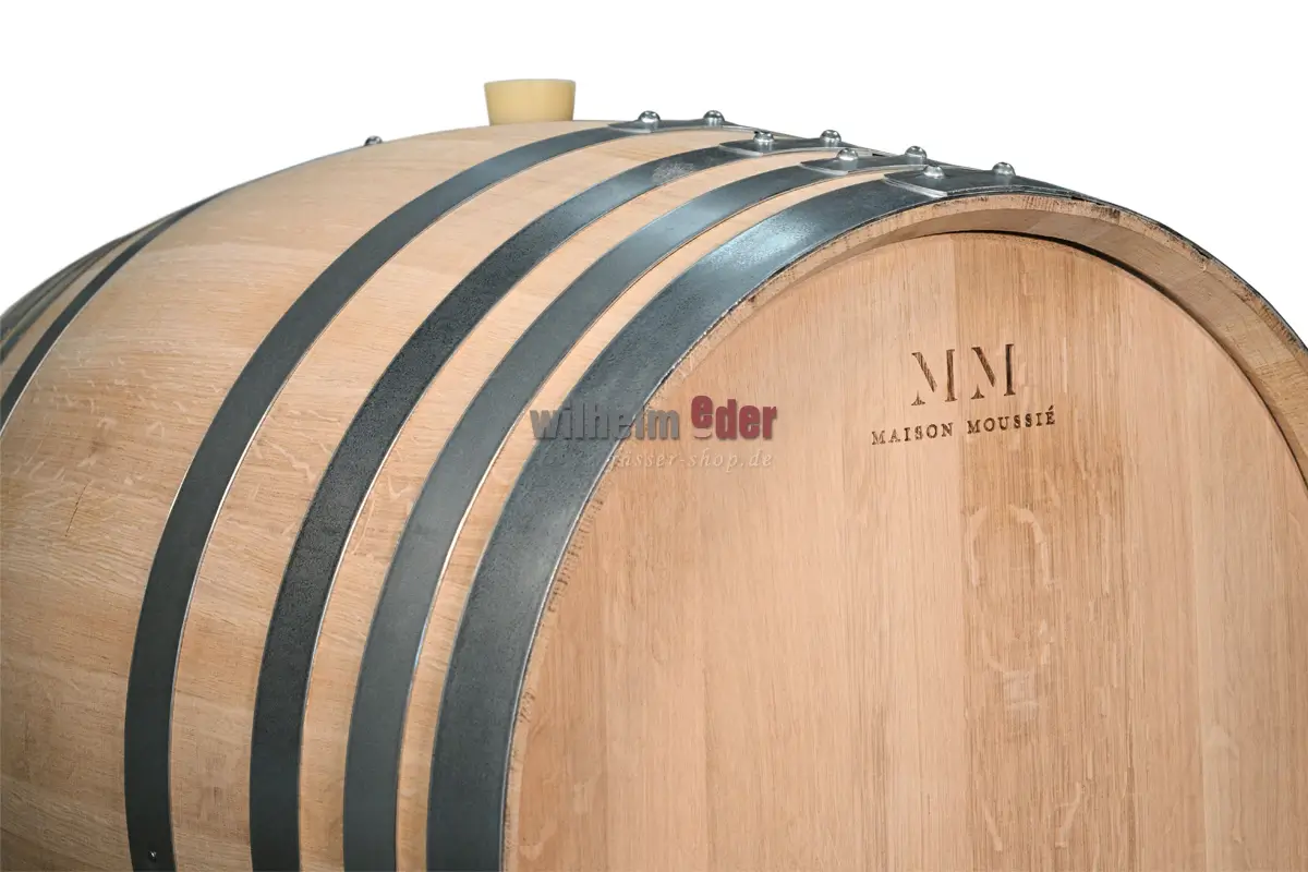 The barrels from Maison Moussié combine authenticity and innovation with the utmost elegance. They are designed to protect the wine's identity and enable the pure expression of the fruit.Innovative Toasting Technology The barrels are toasted using a patented technology involving hot stones. This combustion-free process utilizes natural stones and water elements combined with heat to create uniformly toasted barrels. Electrical conductors transfer heat directly to carefully selected natural stones. This heat energy is then transferred from the stones to the barrel staves. Additionally, convection heat generates water, which is sprayed at specific intervals during the toasting process, transforming into steam and circulating hot air to increase the temperature between the toasting machine and the staves.Jade Natural jade is an option that imparts additional elegant qualities to the finished wine.Wood - Chêne Francais Selection Premium Forêts Françaises - 24 months – very fine grain. Our premium barrel is made from very fine-grained oak (1.5 to 2 mm) sourced from French forests selected for their unique properties. The oak is aged for 24 months in our own sawmill.Available Toastings:Harmony: Brings structure, aromatic freshness, purity, and length to white and light red wines.Volupté: Offers aromatic complexity with great respect for the wine. Brings volume, roundness, and length. Suitable for white wine and light red wines.Elegance: Enhances volume and length with notes of roasting and spices. Recommended for grape varieties grown in warmer climates.Complexité: Enhances the fruit of the wine both on the nose and palate. Ideal for achieving a balanced aromatic and structural result.Hoops: 8 galvanized hoopsBung made of silicone