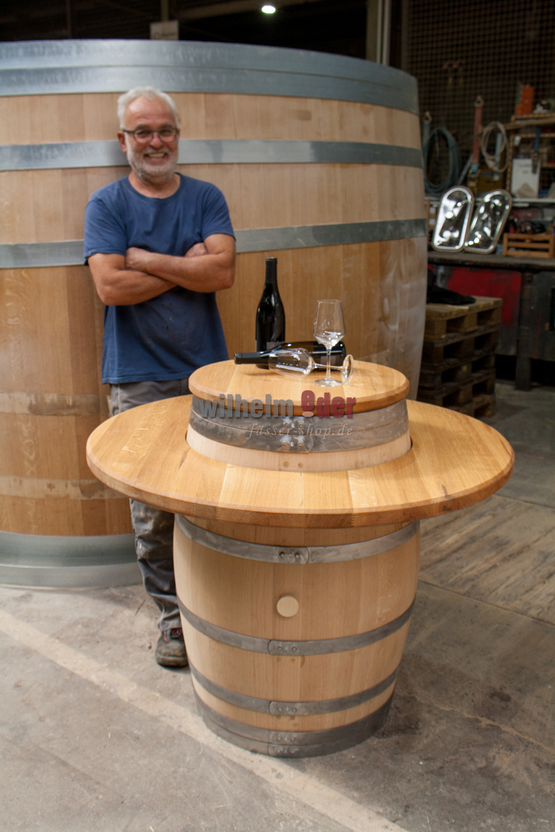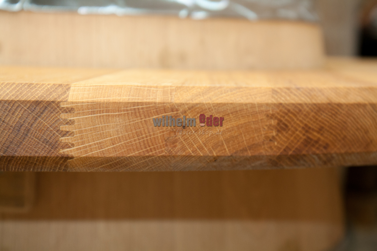 We produce each tabletop individually in our barrel joinery. The oak wood is dried, the staves are grooved and glued and the edges are bevelled. The subsequent planing, sanding and oiling of the table top round off the beautiful appearance.