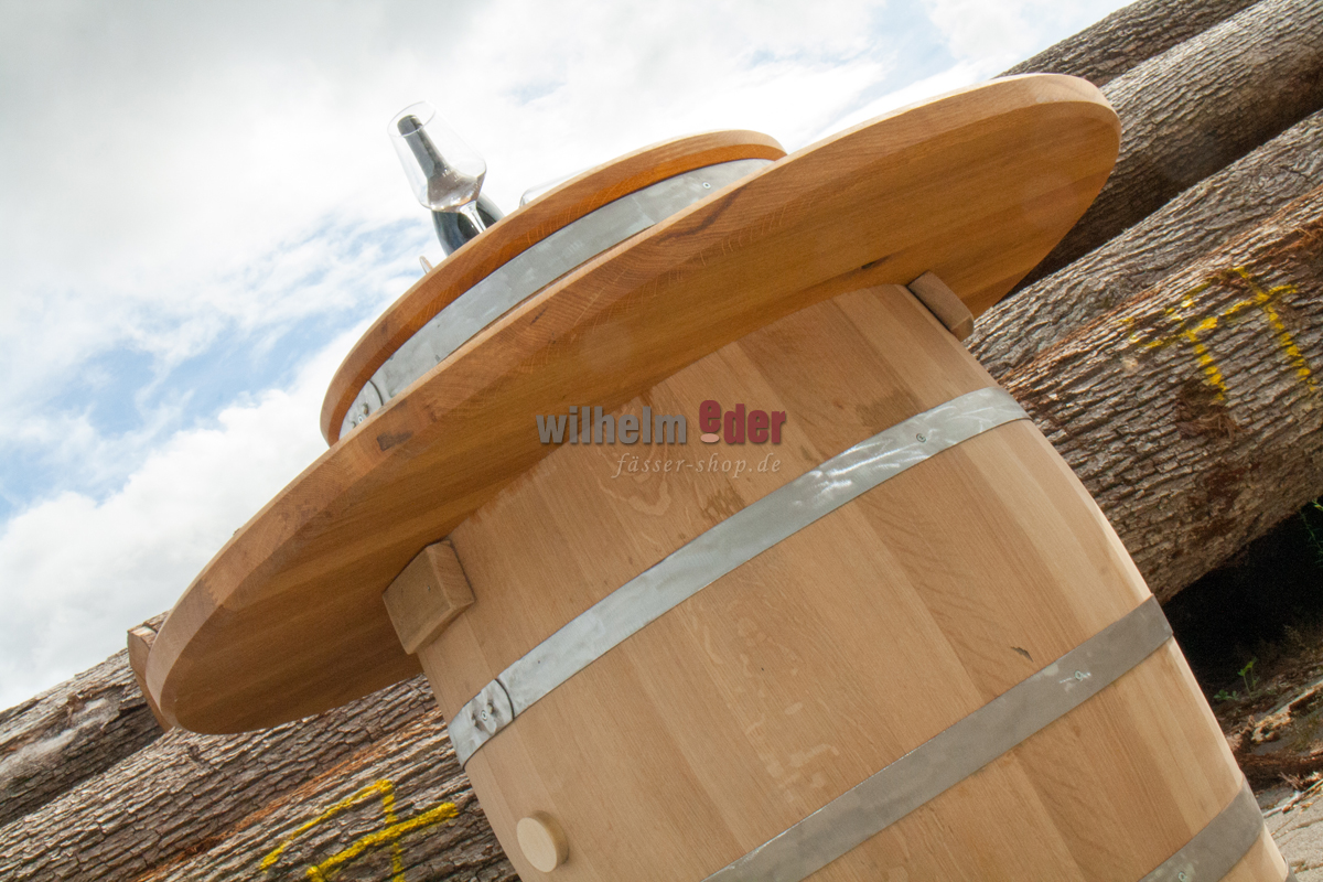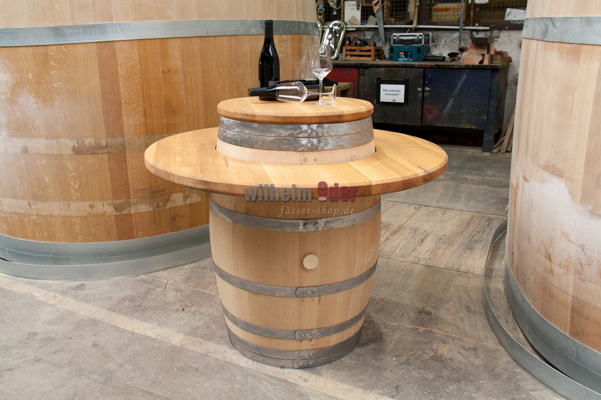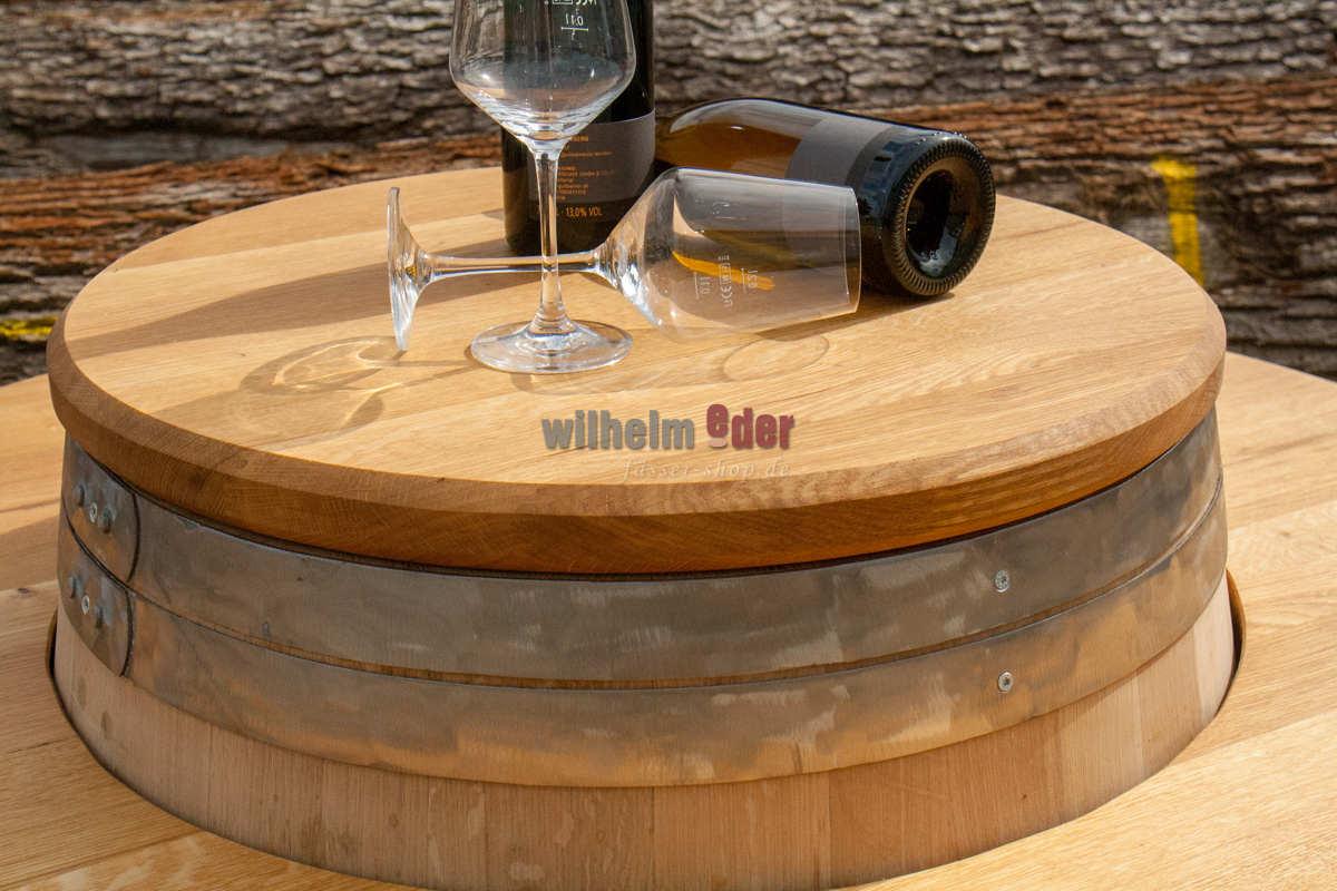 With this solid oak panel with internal recess you can transform your decorative barrique barrel into an original seating arrangement very quickly. The plate surrounds your barrel at a height of approx. 78 cm. Enjoy your glass of wine in style, sitting at the barrel. The recessed, round middle part is placed as a plate on the barrel head.