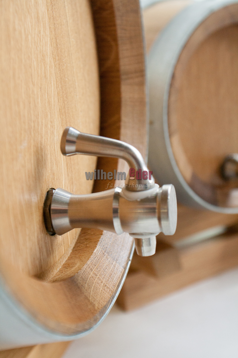 - Scope of delivery Inclusive wooden rack, stainless steel tab und bung