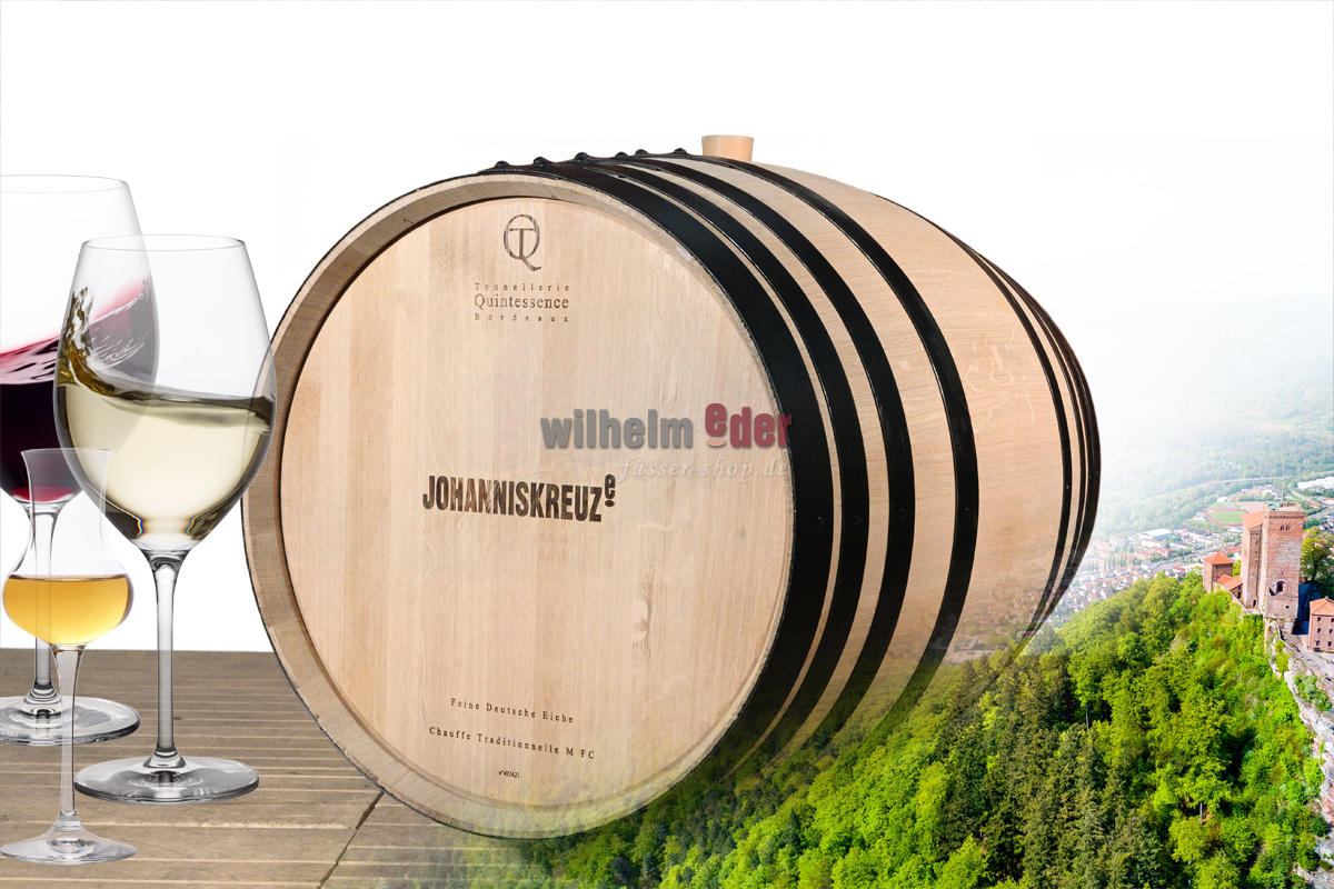 - Description Barrel-Collection: „Johanniskreuz“ - 228 l barrel of fine grain german oak, airseasoned 24 months to 30 months- Stave dimens… More