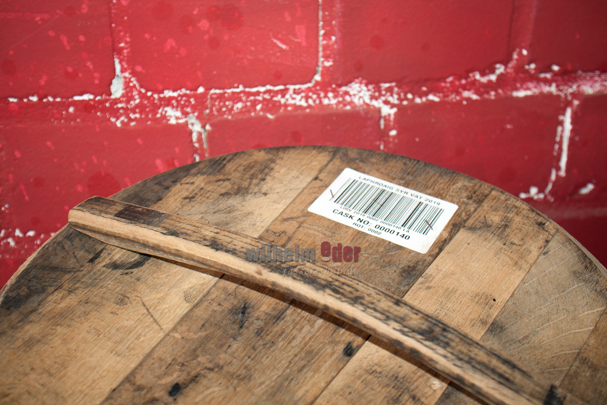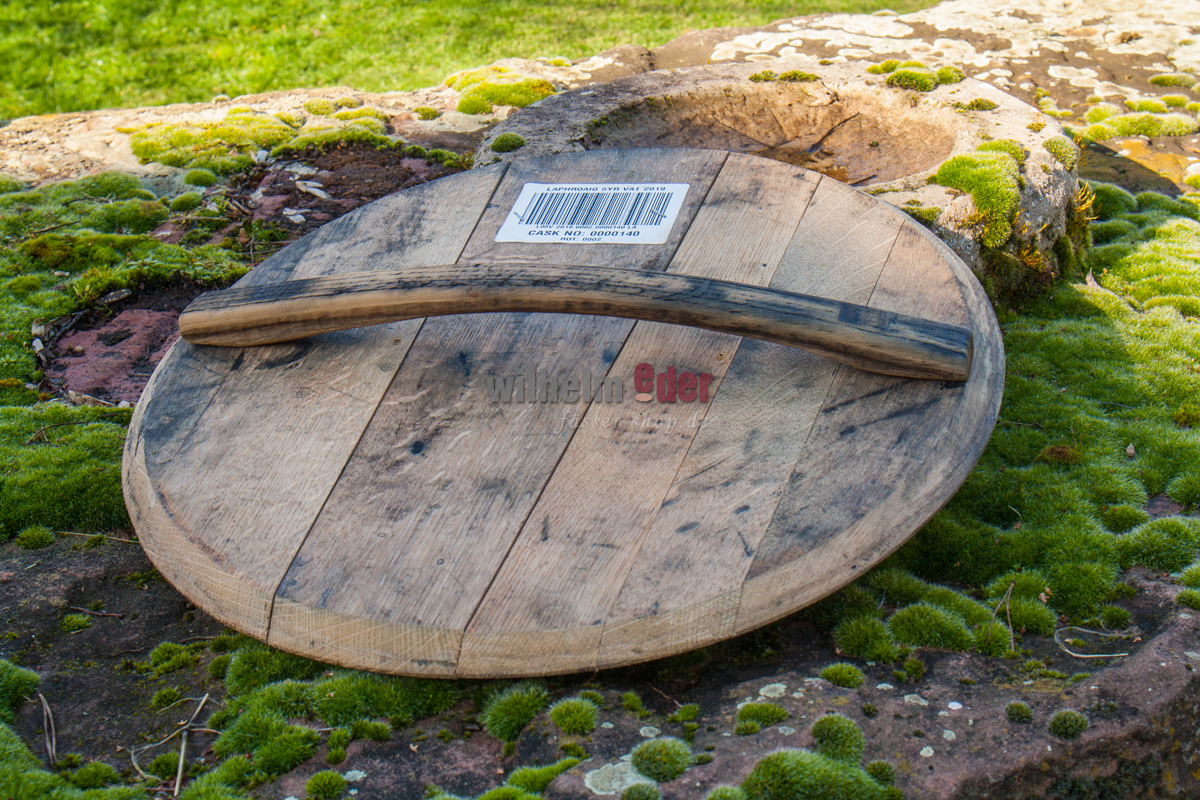 The cask comes with an opened lid with a wooden handle, made from an original whisky stave.