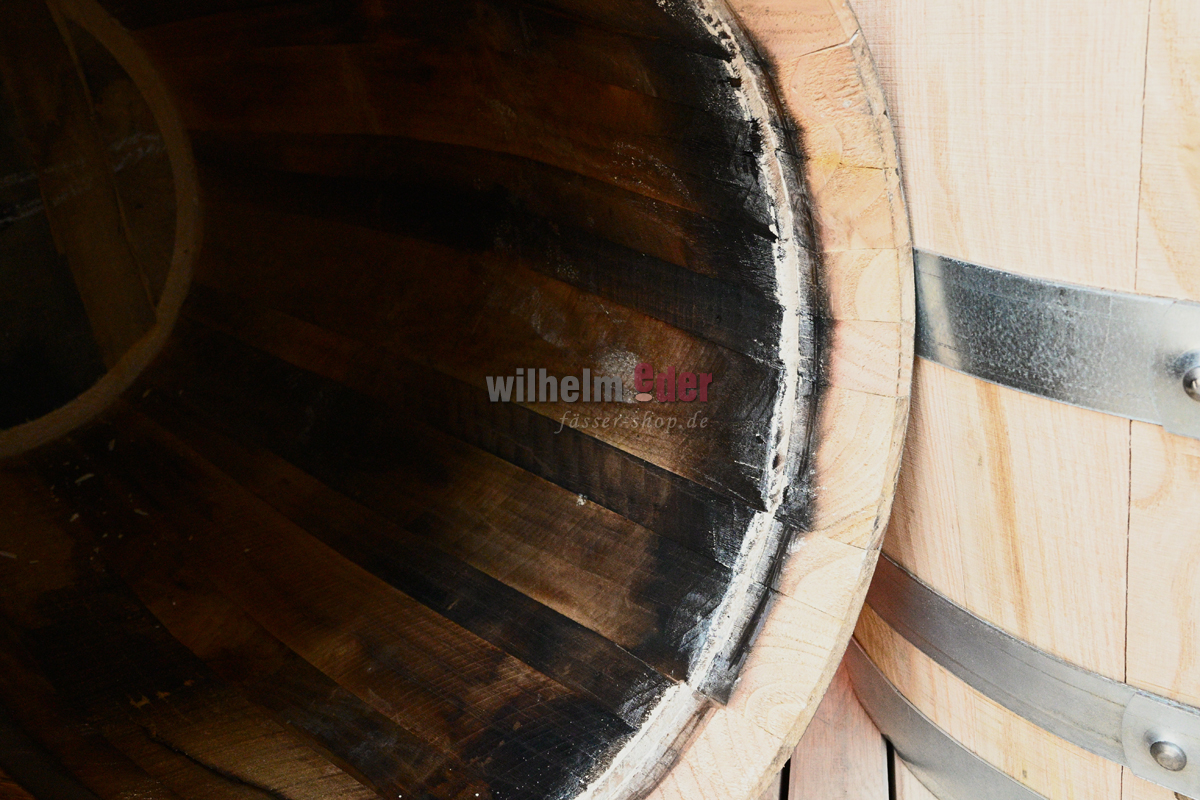 Base made of whiskey barrel staves (height approx. 10 cm), which ensures the safe standing of the barrel and prevents the barrel from drawing moisture from below.