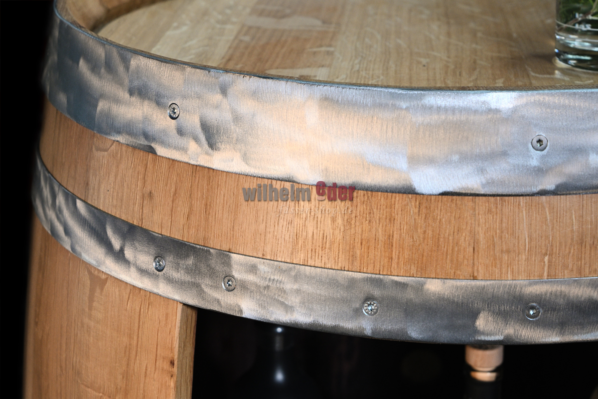 Before making shelves, we let the barrels dry and glue the staves individually. This elaborate process ensures the stability of the shelf and prevents the wood from warping due to temperature fluctuations. Please note, however, that too dry and warm heating air does not do the barrel good.
