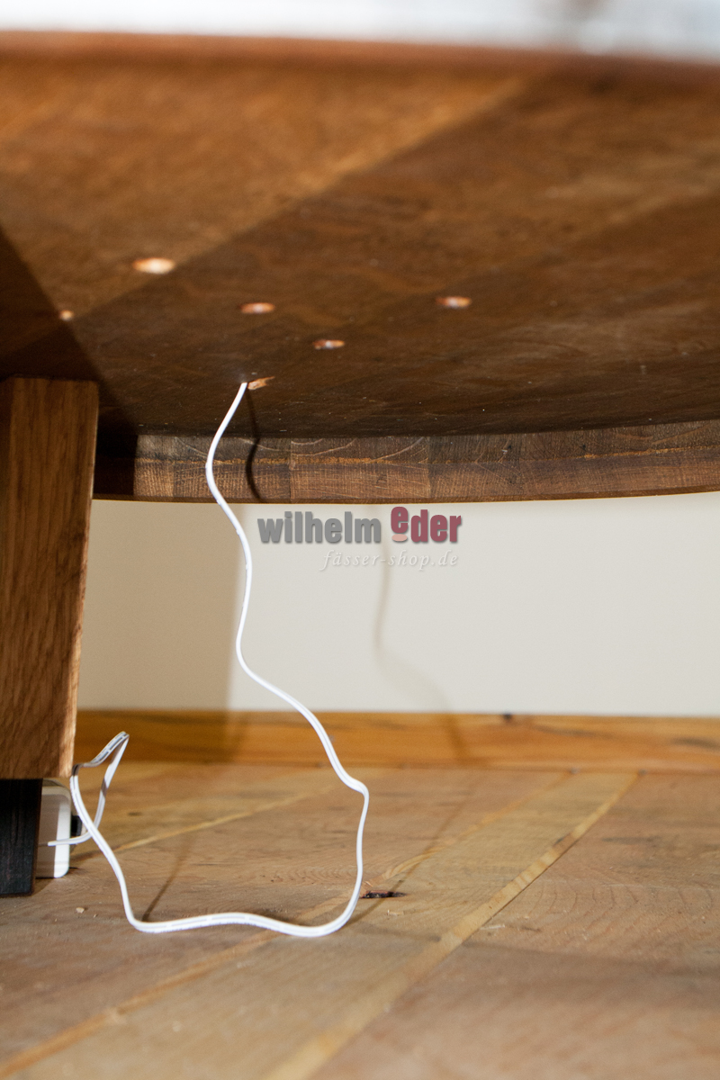 Before making shelves, we let the barrels dry and glue the staves individually. This elaborate process ensures the stability of the shelf and prevents the wood from warping due to temperature fluctuations. Please note, however, that too dry and warm heating air does not do the barrel good.