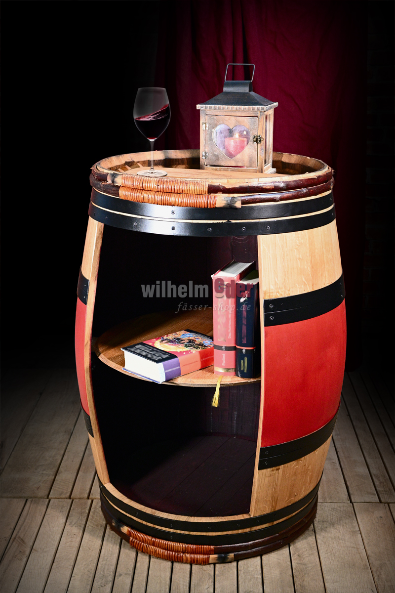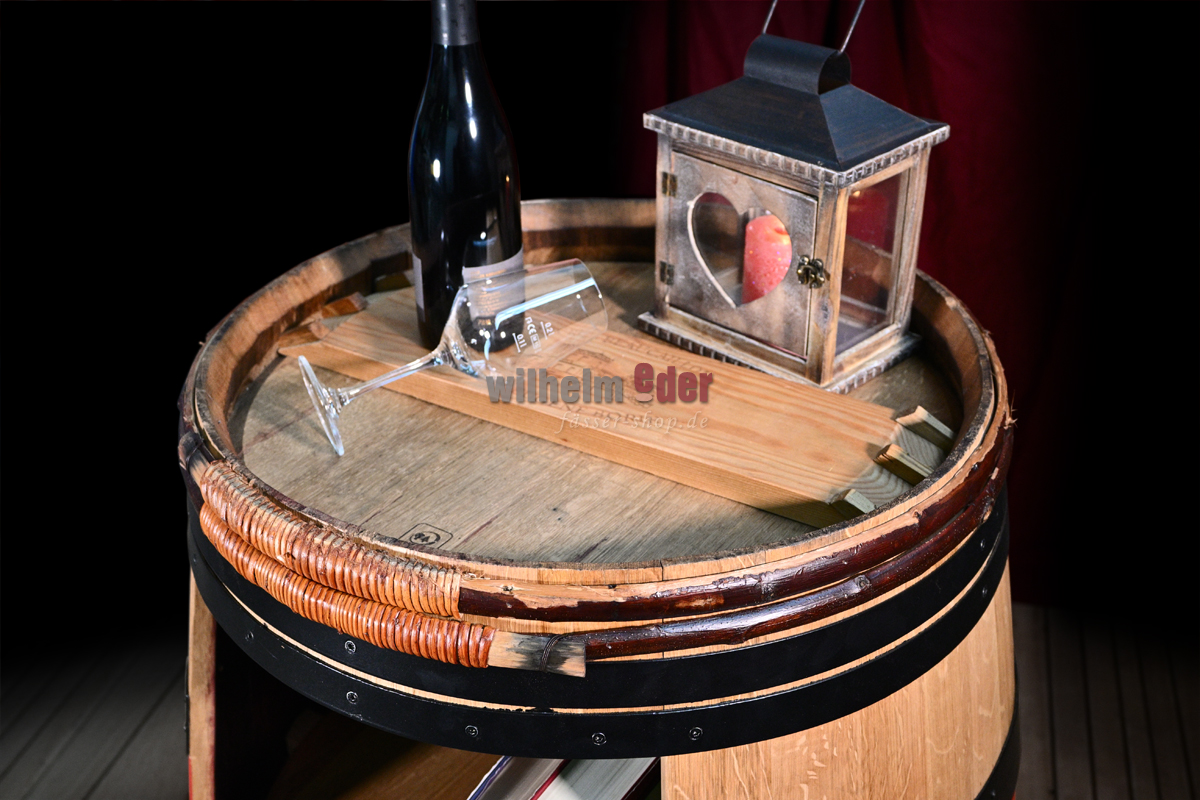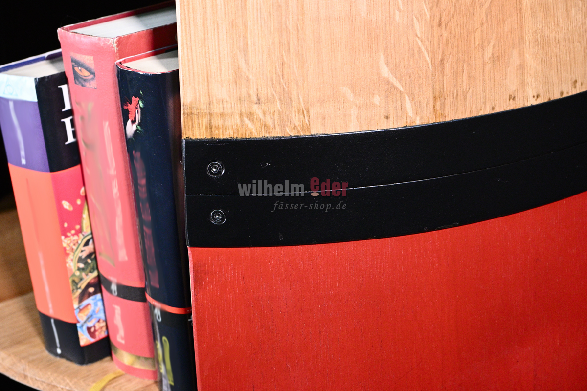 Before making shelves, we let the barrels dry and glue the staves individually. This elaborate process ensures the stability of the shelf and prevents the wood from warping due to temperature fluctuations. Nevertheless, please note that excessively dry and warm heating air is not good for the barrel.
