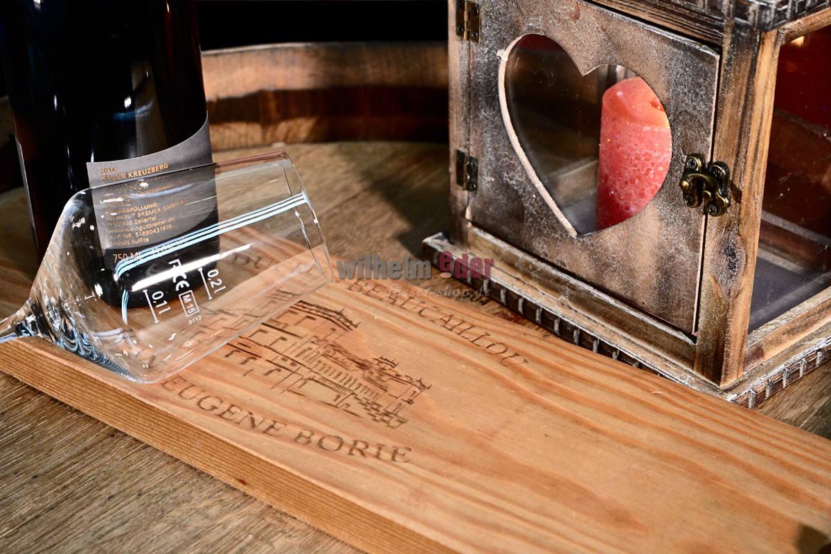 From a Chateau Traditional barrel in which the wine of a renowned Chateau Grand Classé in the region of St. Emilion in Bordeaux matured, our carpenters have created this shelf.