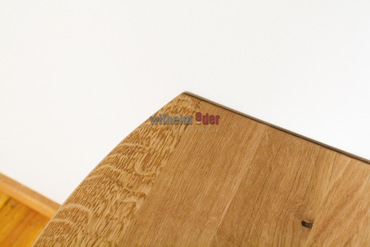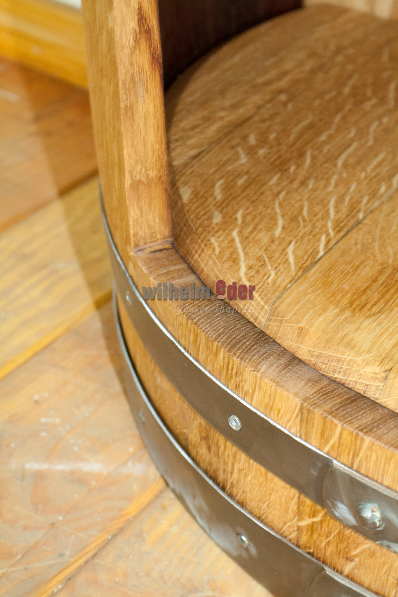 The barrel was professionally cleaned, dried, glued and finely sanded. Then the upper third of the barrel was cut off to reach a final height of about 58 cm for the table.