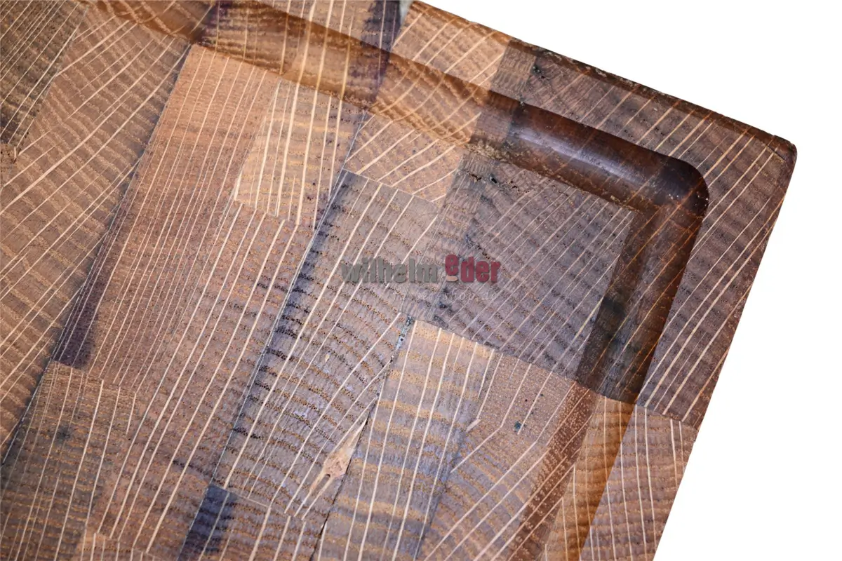 The use of recycled red wine barrel heads gives the chopping block a rustic look and tells the story of past wine years. It can also be used as a chopping block and is a unique piece with an authentic character.