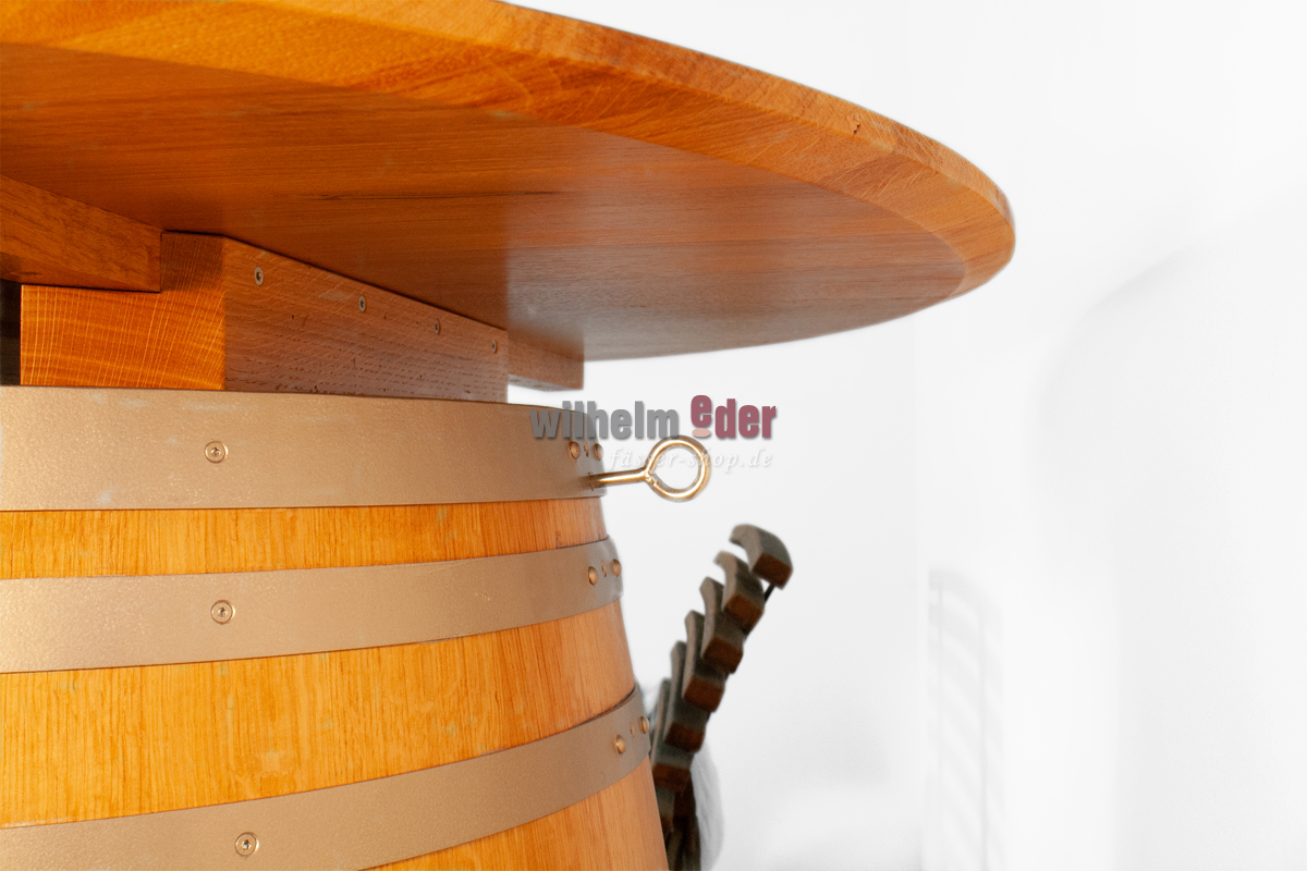 - Scope of delivery Barrel is professionally cleaned and sandedA round wooden plate is firmly attached to the barrel with a wooden substructureSi More