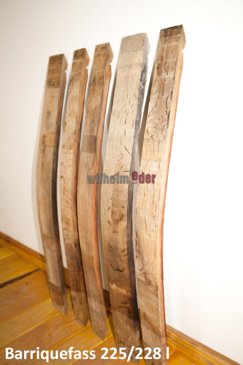 Original barrelstaves, in different sizes and optics. The staves are very well suited as a decorative eye-catcher or for do-it-yourselfers to build their own furniture. There are no limits to creativity. The original barrels were stored for decades in dark, damp wine cellars. Each wine barrel and thus each barrel stave tells its own story, which is reflected under different colors. Hardly any other accessory radiates more authenticity than a used stave.