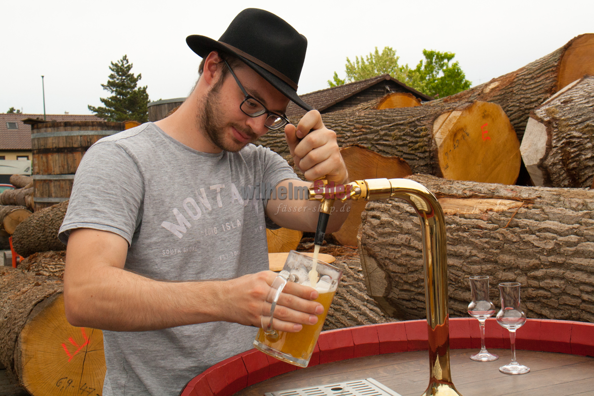 A tapping barrel has been built out of a 600 l deco barrel by our carpenters. This barrel will make every beer lovers heart beat faster.