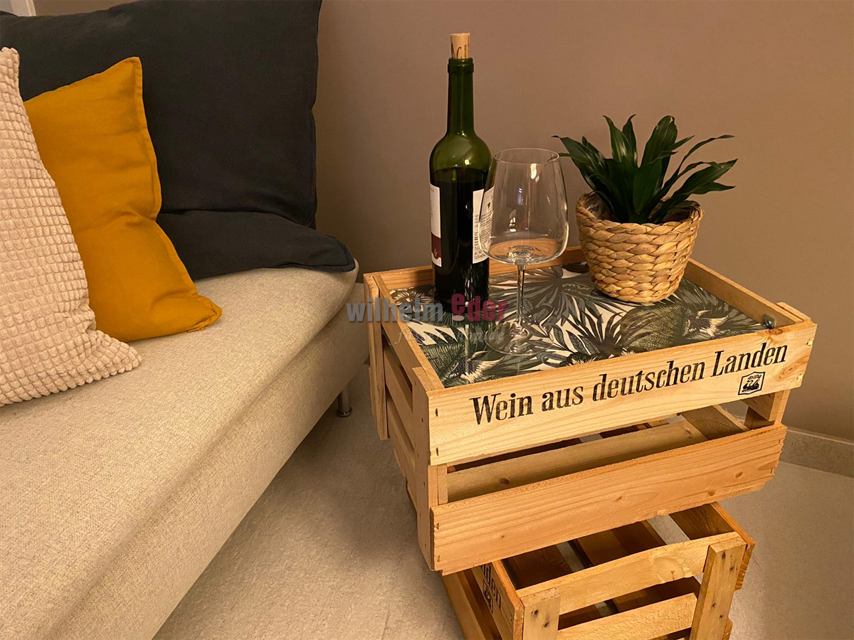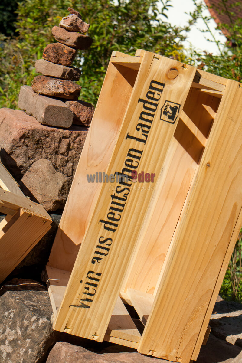 The original wooden crates - popular for storing fine wines; also for hobbyists who like to work with wood and conjure up wonderful furniture such as shelves, tables, storage boxes and much more from the crates using the "do it yourself method". There are no limits to creativity. Through staining, sanding, varnishing, each wooden crate becomes a decorative unique piece and fits into almost any rustic or modern room, such as in the garden as a plant pot or storage system.