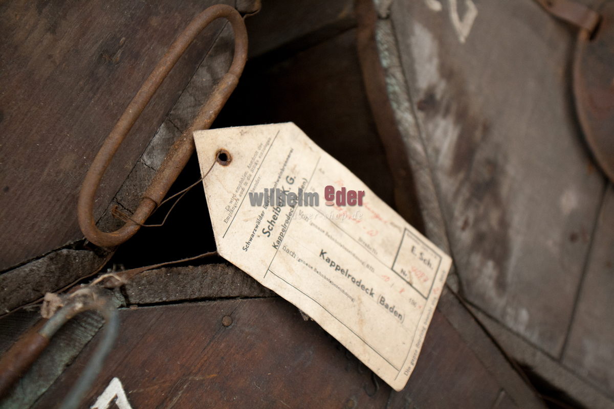In the old days, the distilled cherry brandy was transported from the Black Forest to its customers and buyers. Wrapped in straw and a wooden coat, the valuable contents were transported to their destination or drinking place.