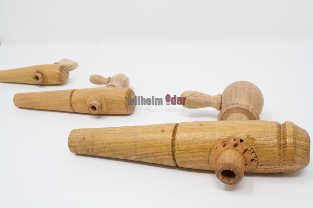 Wooden tap for occasional tapping. For professional and permanent use, we offer a stainless steel tap