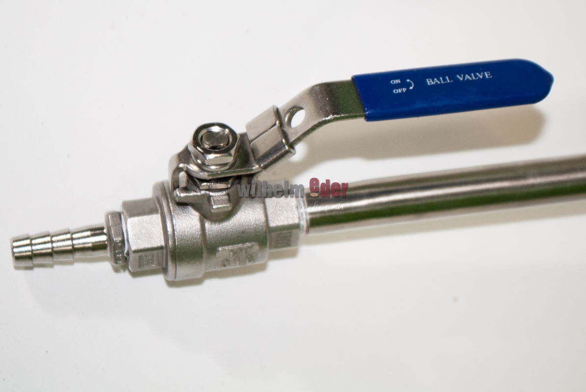 4. Fill up gas (Co2 or Nitrogen) max. 0,5 Bar (Gas connection with hose nozzle)